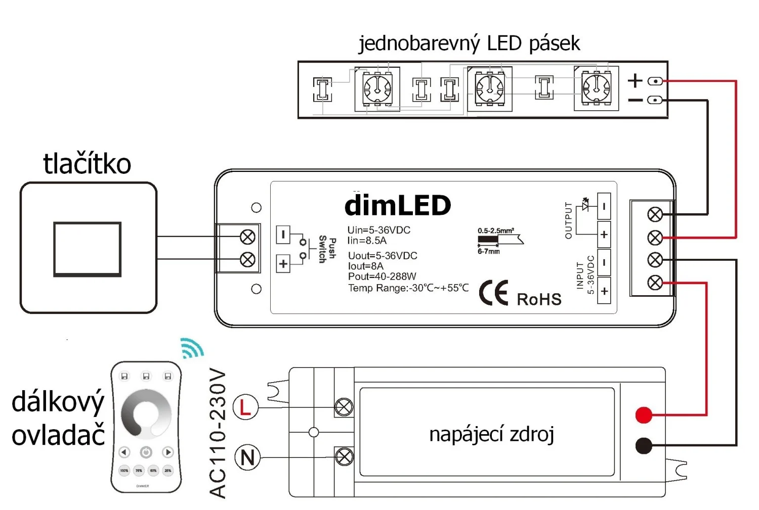 - Jednobarevné LED produkty s napětím 5-36V